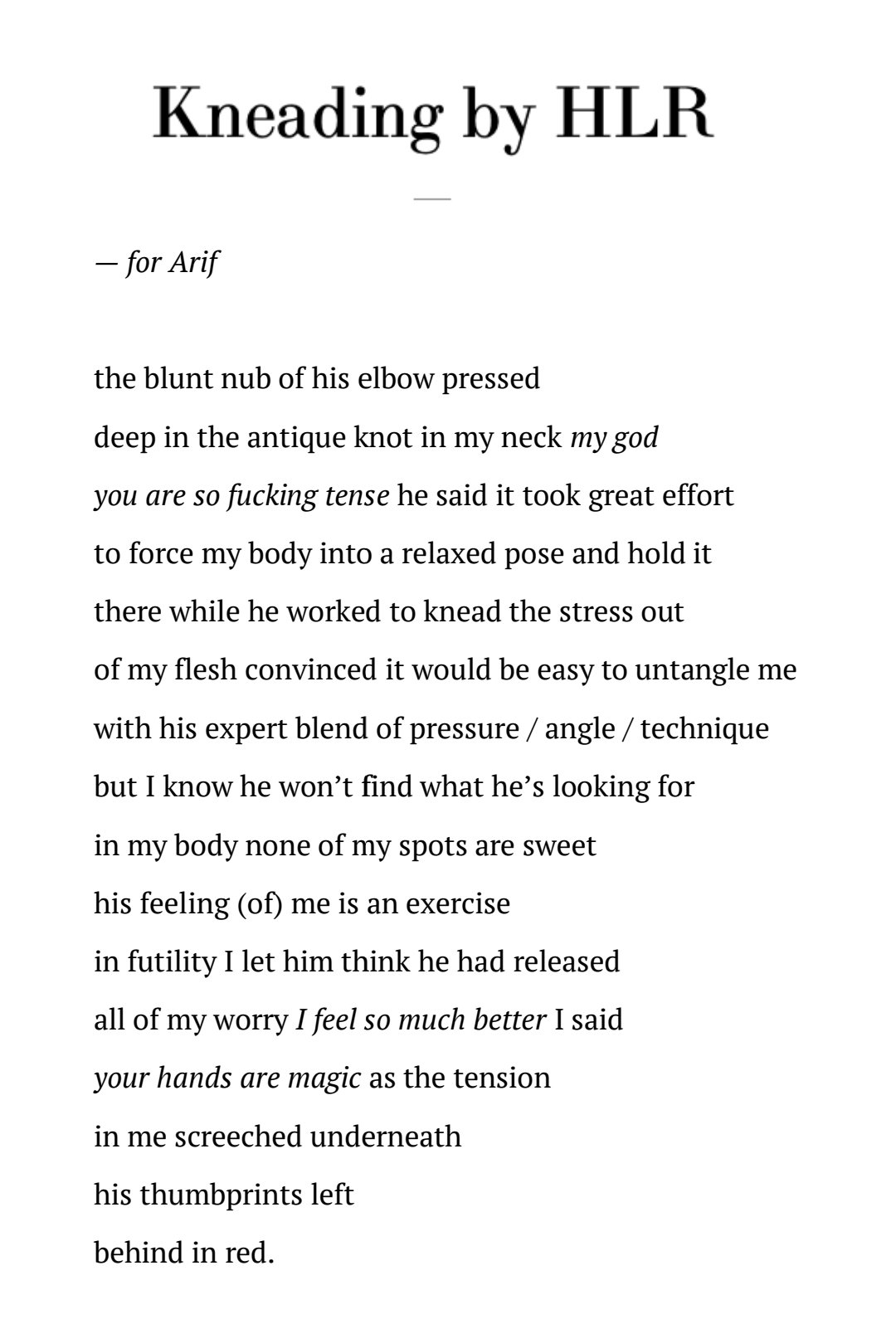 Kneading HLRAug 5, 2021May 11, 2023Poetry Post navigation PreviousNext Originally published by Lunate (August 2021). Share this: Share on X (Opens in new window) X Share on Facebook (Opens in new window) Facebook Like Loading... Related